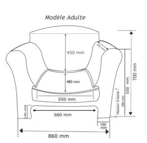 Dimensions du Fauteuil : longueur 86 cm / Largeur 70 cm / Hauteur 70 cm